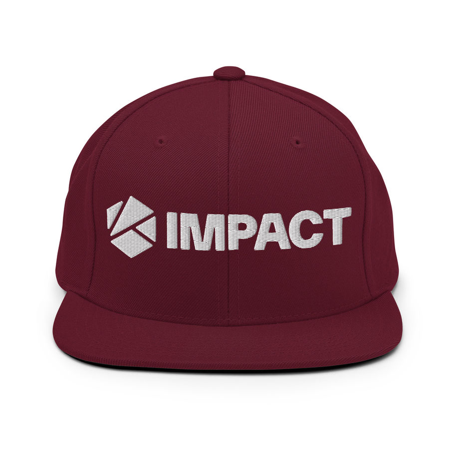 Snapback with Impact Wordmark on the front and an Impact logo on the back.